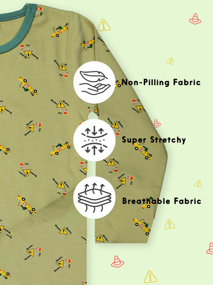 - All-over construction vehicle print